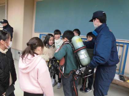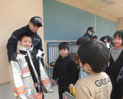 消防車の機能について見せていただいたり、防火衣などを着させていただいたりしました。