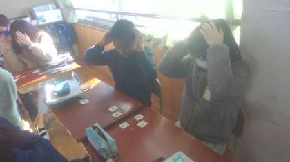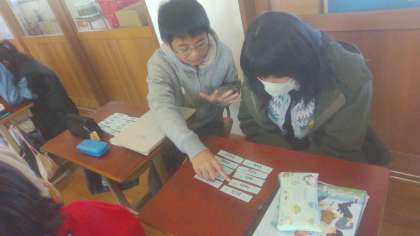 学校行事の言い方を、ゲームを通して覚えました。メモリーゲームでは、ペアで協力して考えていました。