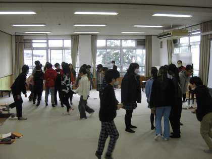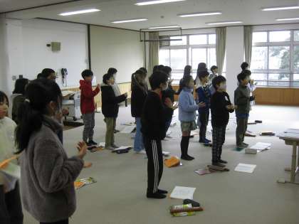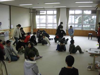 教室を歩いたり体を動かしたりしながら