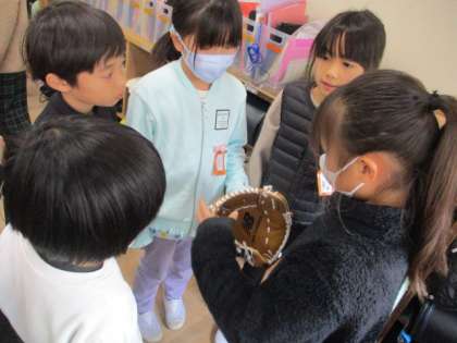 大谷翔平選手から素敵な贈り物が届きました。子どもたちも触ったり、はめたりして大喜びでした。