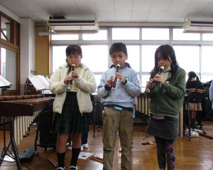 音楽科の学習で、「エーデルワイス」の曲を合奏しています。