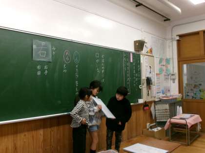 班ごとに2問ずつ出し、楽しそうに答えていました。
