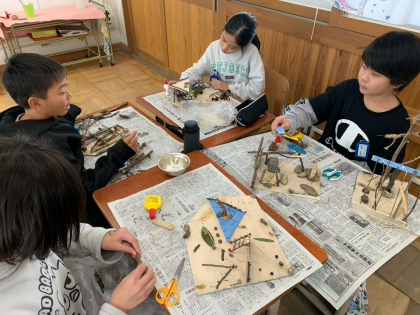 植物や木を使った「ひみつのすみか」の制作に励んでいます。どの子もこだわりをもって一生懸命作っています。素敵な世界が広がっており、完成が楽しみです。