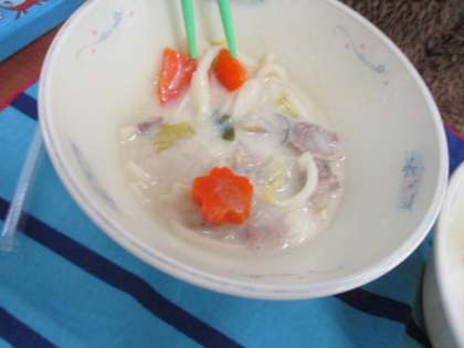 豆乳鍋の中に星と桜の形のにんじんが入っていました!