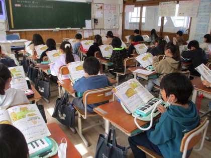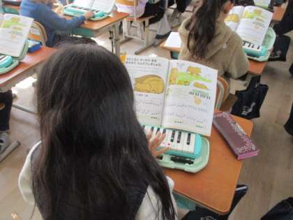 音楽科「みんなであわせて楽しもう」の学習で「子ぐまの二月」という曲に取り組んでいます。今日はけんばんハーモニカで演奏をがんばりました!