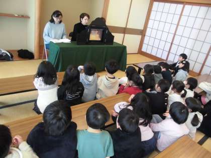昼チャレンジの時間にボランティアの方に紙芝居を読み聞かせしていただきました。子どもたちも目をキラキラさせながら真剣に聞いていました。
