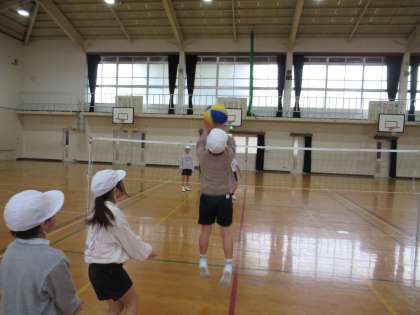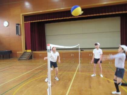 今日から、体育科ではソフトバレーボールが始まりました。チームでボールをつなぐことができるよう、お互いに声をたくさんかけあっていました。