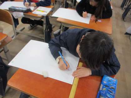 その出来事を詳しく思い出しながら、自分の言葉で文を書いています。