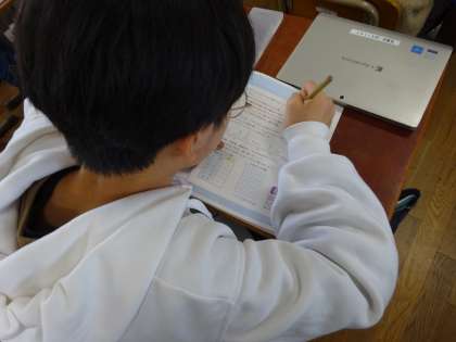 算数パスポートという、6年間の復習に取り組んでいます。小学校のまとめとして、たくさんの問題を解いています。分からないところは教科書を使って調べたり、質問したりしています。