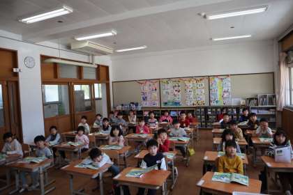 音楽の学習では、教科書にある絵の中から歌を見つけて、みんなで一緒に歌いました。