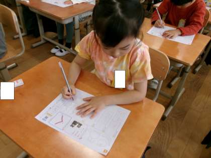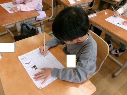 国語科で、ひらがなの学習が始まりました。今日は、「く」の練習をしました。書き順やマス目、姿勢、鉛筆の持ち方など気を付けることがたくさんありましたが、みんな集中して取り組んでいました。