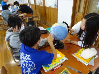 社会科の学習がスタートしました。地球儀や地図を見比べたり、大陸や海を確認したりしました。そして、学習問題をたてて予想しました。