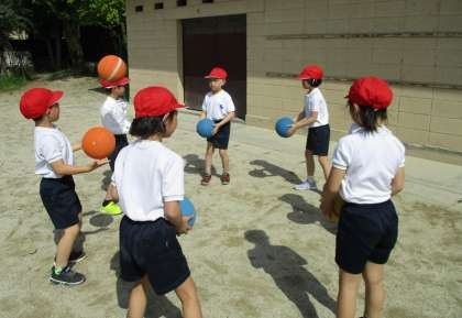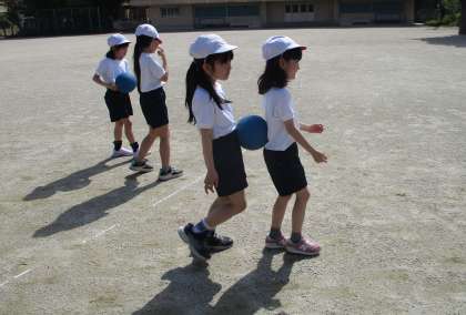 体育科の学習で、運動場で体ほぐしをしました。遊具の安全な使い方も確認しました。