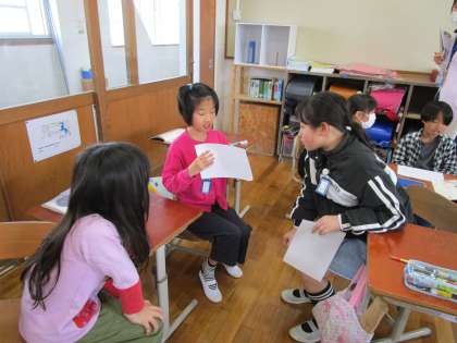 自分の名前を使って、あいうえお作文を作ってクラスのお友達に自己紹介をしました。自分の好きなものや頑張っていることなど、お友達に上手に伝えることができました。