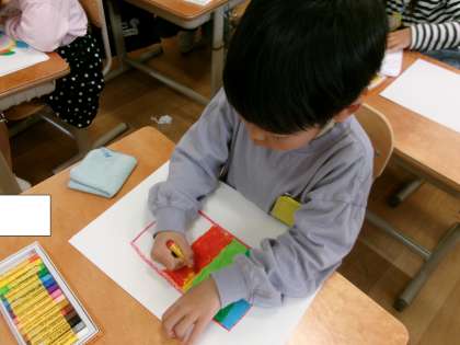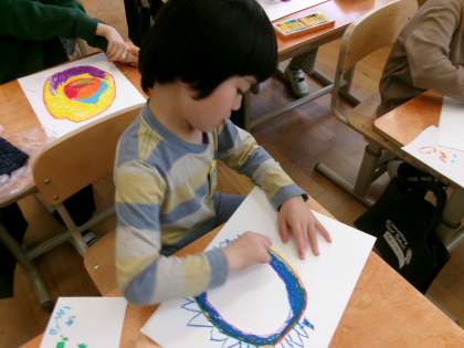 図画工作科の時間に、自分のオリジナルのおひさまを描きました。