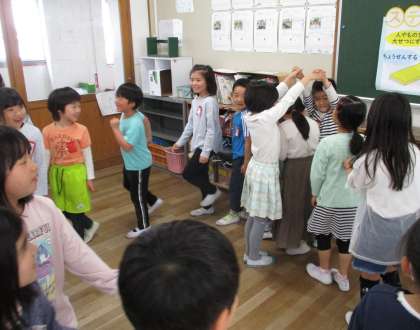 音楽科の学習で「ロンドンばし」の曲に合わせて、みんなでゲームをしました。