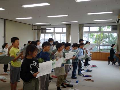 1年生を迎える会に向けて、学年で音楽の学習を行いました。スクールサポーターの先生の軽快なピアノに合わせて、楽しそうに歌っていました。
