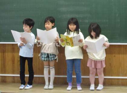 国語科の学習で「ふきのとう」の音読発表会をしました。