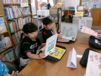 と上手に言いながら返却できました。2回目なので、2冊の本を借りました。嬉しそうに本を選んでいました。