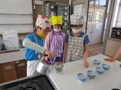 初めての調理実習を行いました。みんなでガスコンロの使い方や安全に気を付けながら、おいしいお茶を入れることができました。