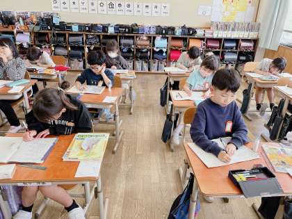今日は、まちたんけんに行ってわかったことを、ノートにまとめていきました。