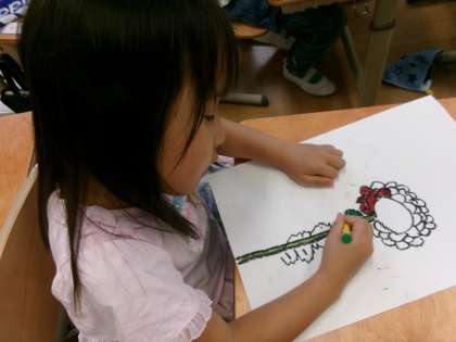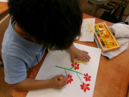 バラやマリーゴールドなどの花びらを丁寧に描いていました。