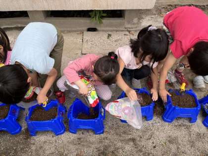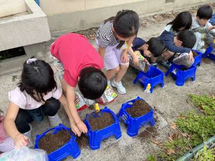「芽が出ますように」「きれいに咲いてね」と声をかけながら取り組むことができました。