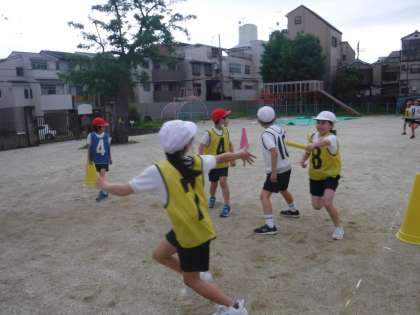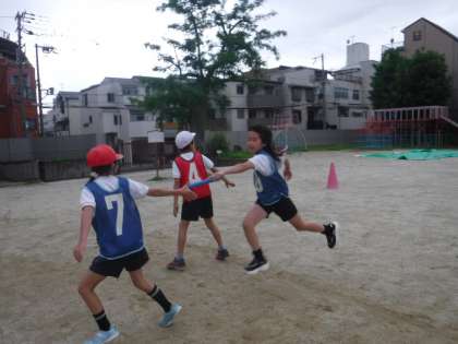 10チームを3グループに分けて、対戦しました。リードやバトンパスをする際、声を掛け合ったり、応援し合ったりと、どのチームも接戦でした。最後まで、チームで励む姿は、本当にかっこよかったです。