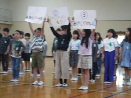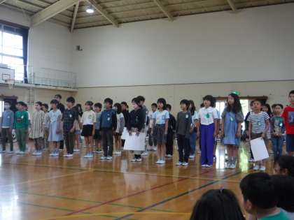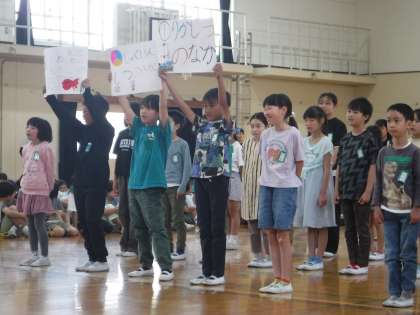 1年生をむかえる会が行われました。朱雀第四小学校で楽しく過ごしてもらいたいと、子どもたちがクイズを入れながら、発表をしました。1年生がクイズを楽しんでくれている様子が、とても嬉しかったようです。