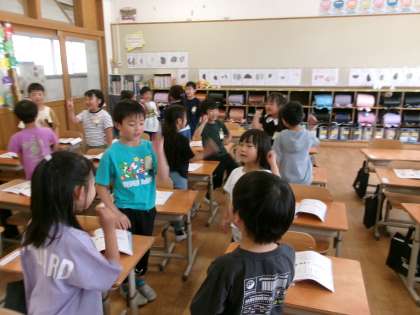 音楽科の学習では、身体を動かしながら歌を歌っています。