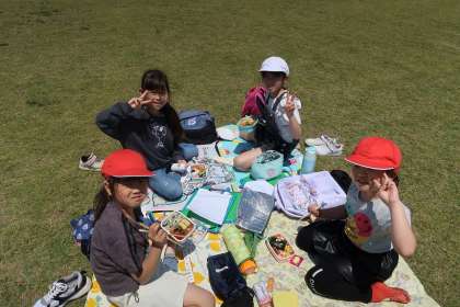 京都駅と京都タワーを見学した後には、梅小路公園に行ってみんなでお弁当を食べました。