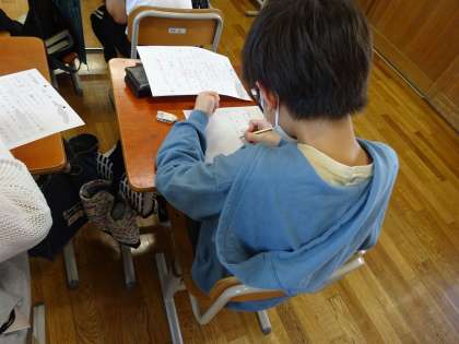 今年から、昼のチャレンジタイムでは、テーマ作文に取り組んでいます。様々なテーマをもとに、一生懸命文章を考えています。