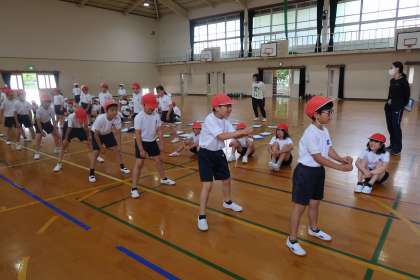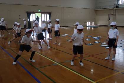 今日は、学年で反復横跳びや立ち幅跳び、ソフトボール投げをしました。