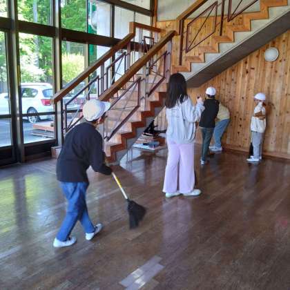 宿泊棟の掃除をしました。手洗い場やミーティング室、自分の部屋などみんなで手分けしてきれいにしました。