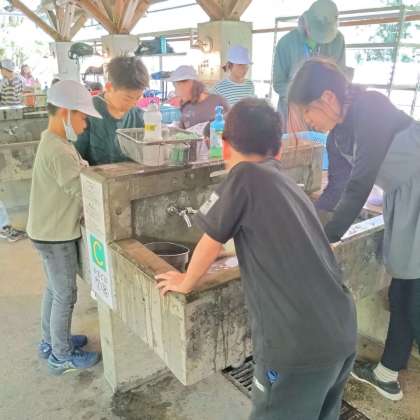 食べ終わった後はみんなで片付けです。すすで汚れた鍋を一生懸命洗ったり、かまどの掃き掃除をしたりと「来た時よりも美しく」をモットーに頑張っていました。
