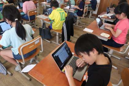 3年生では、タブレットを使ってタイピングマスターにチャレンジしました。