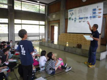 見学の後は、見てきたことを忘れないようにと、必死でメモを取っていました。また、最後にたくさん質問をし、充実した見学になったようです。また、お土産に「疎水物語」という保存水をいただき、とても嬉しそうでした。
