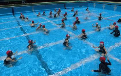プールの中で、歩いたり走ったり、わに歩きやカニ歩きをしました。