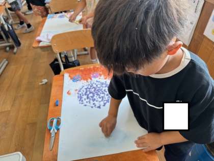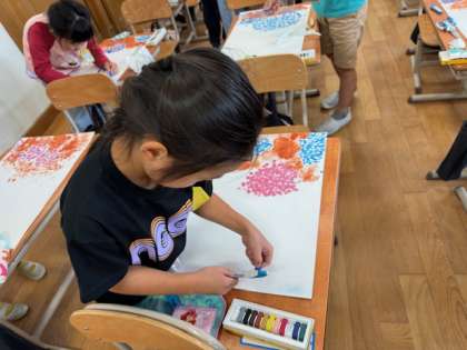 コンテを使って空を描きました。色づく様子を楽しんで取り組んでいました。