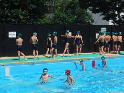 今年初めての水泳学習です。学習で大切なことを約束した後に、早速プールへ。水慣れの仕方もしっかり覚えていました。自分のねらいに合わせて、平泳ぎやクロールにチャレンジしました。