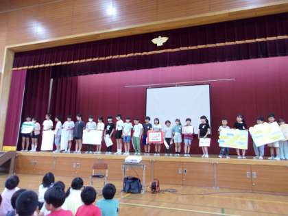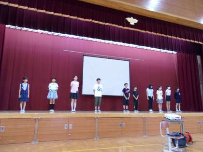 今日は、あかしやタイムを行いました。初めに本部役員の紹介を行いました。その後3年生以上の代表委員と学級目標の紹介をしました。最後に児童会から児童会目標を紹介しました。