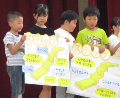 クラスの代表の人が、みんなの前でクラス目標を発表しました。
