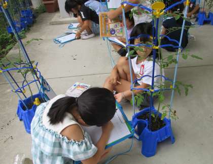 「早く、赤くならないかな」と、大切に水やりをしています。
