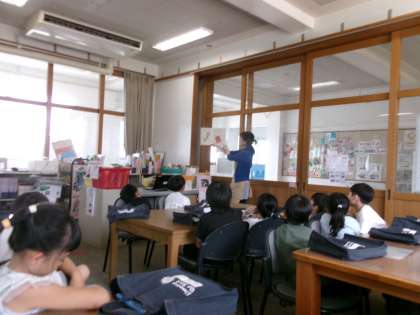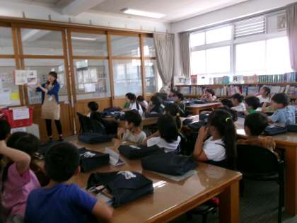 今日は毎週楽しみにしている図書の時間でした。「いいものみ〜つけた」という本を司書の先生に読み聞かせしていただきました。読み聞かせの本も読書ノートに書き加えていました。