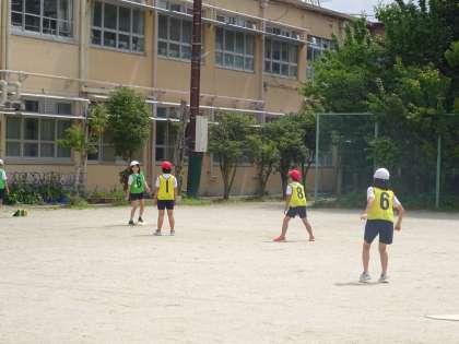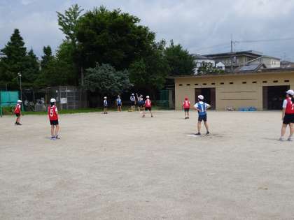 ベースボールのルールにも慣れてきて、チームで作戦を考えながら試合をしています。相手の守っている位置を見て打つところを考えたり、打つ人を見て守る位置を変えたりと、それぞれ工夫が見られます。