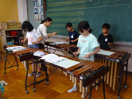 「リボンのおどり」をグループで演奏します。今日は、パートに分かれて楽器の練習をしました。