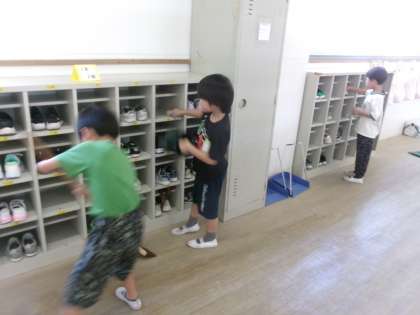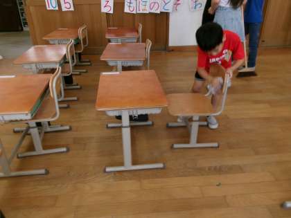 時間になるとすぐに掃除を始められるように、自分たちで時計を見て机を下げたり、バケツに水を入れたりと頑張る姿が見られます。