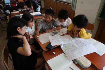 授業では、夏の虫を増やすために、グループごとにポスターを作りました。