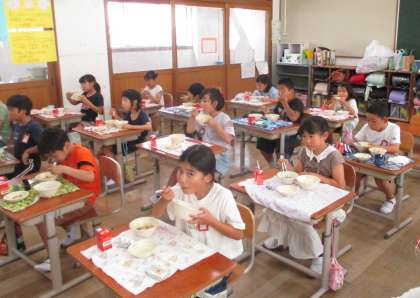 「久しぶりの給食、やっぱりおいしいな」と、にこにこ笑顔で食べていました。