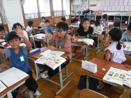 社会科の学習で、日本は自然災害が多いことを知りました。そこで、平成18年度に起こった台風18号の新聞記事や映像をもとに、災害が起こったとき、私たちのくらしにどのような影響があるのかや、だれがどうように対応しているのか予想を立てました。今後は、資料を基にどのような人々の支えがあるのかを調べていく予定です。